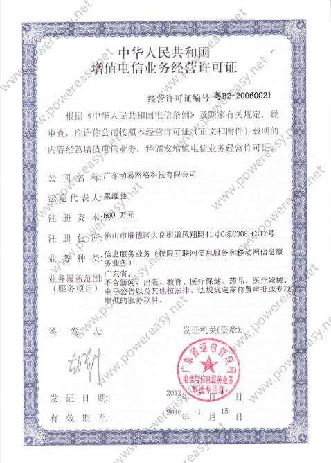 增值電信業(yè)務(wù)經(jīng)營許可證