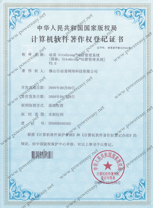 軟件產(chǎn)品登記證書 動易SiteGroup站群管理系統(tǒng)V3.0