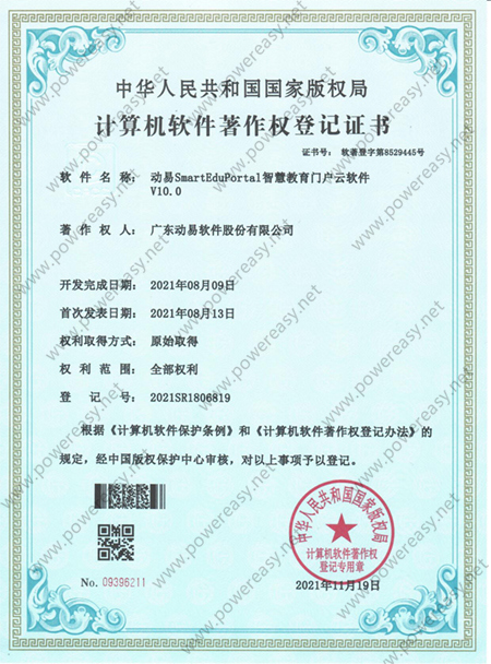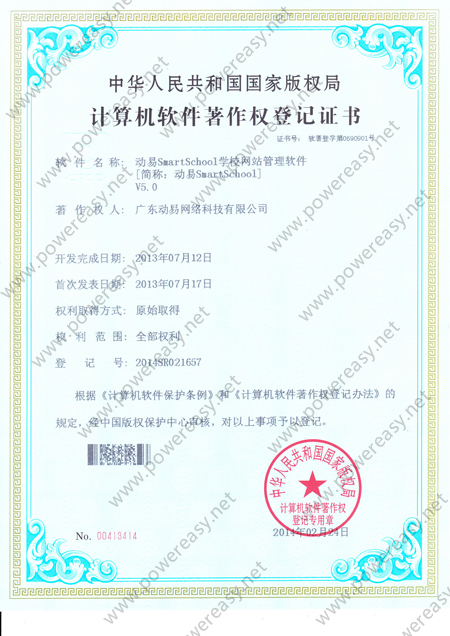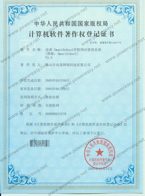 軟件產(chǎn)品登記證書 動易SmartSchool學(xué)校網(wǎng)站管理系統(tǒng)V3.0