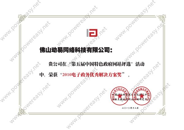 2010電子政務(wù)優(yōu)秀解決方案獎