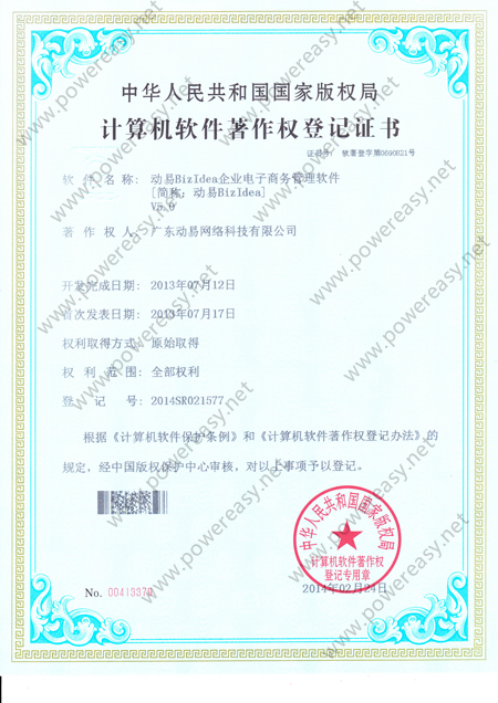 軟件產(chǎn)品登記—動易BizIdea企業(yè)電子商務(wù)管理軟件V5.0