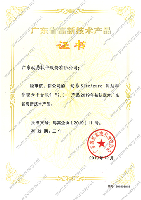 2021高新技術(shù)產(chǎn)品證書—動易SiteAzure 網(wǎng)站群管理云平臺軟件V3.0