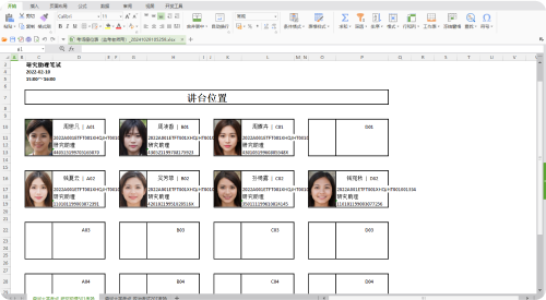 座位表又分為監(jiān)考老師用和張貼用兩種格式:監(jiān)考老師用的座位表的效果與座位安排界面類似,顯示了考生的照片、姓名、準(zhǔn)考證號(hào)、報(bào)考班級(jí)、身份證號(hào)碼,以便監(jiān)考老師核對(duì)考生信息,防止有人替考;張貼用的則只顯示考生姓名和準(zhǔn)考證號(hào),并可選擇是否顯示報(bào)考班級(jí),以防止泄露考生的個(gè)人隱私。
