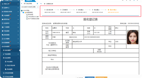 支持對(duì)報(bào)名表已通過審核(進(jìn)入筆試流程)的考生做專門的筆試管理。