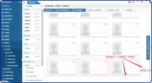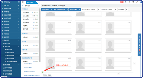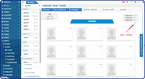 考點(diǎn)和考場(chǎng)管理不需要專門的菜單,直接在“筆試座位安排”的考場(chǎng)導(dǎo)航中欄進(jìn)行管理。
