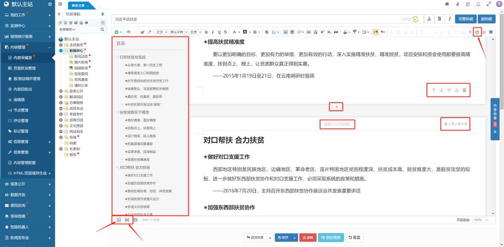 基于標(biāo)準(zhǔn)模式,增加了內(nèi)容分頁和內(nèi)容大綱(目錄)功能,主要用于文章內(nèi)容編輯。