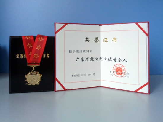 粟維勝總裁獲“廣東省就業(yè)創(chuàng)業(yè)優(yōu)秀個(gè)人”稱號(hào)