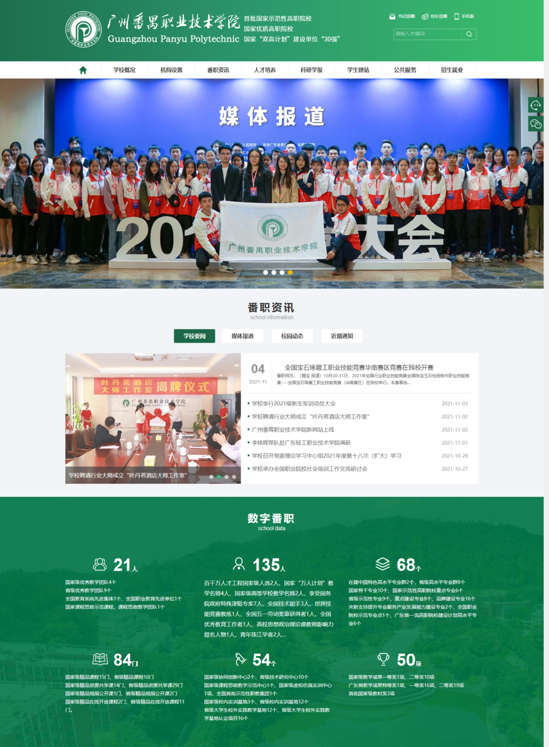 全新的頁面設(shè)計(jì)緊跟時(shí)代前沿,延續(xù)學(xué)院辦學(xué)理念。新網(wǎng)站沿用綠色作為主色調(diào),美觀大方,體現(xiàn)學(xué)校特色和時(shí)代氣息。
