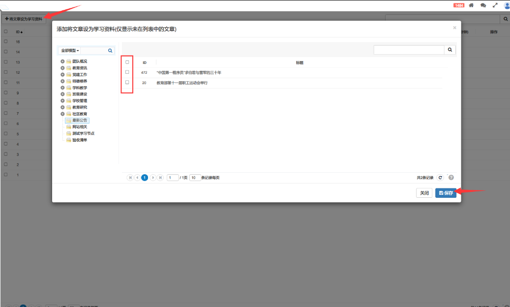 可使用內容管理中的文章、視頻、圖片等作為學習資料來源,方便、快捷的對學習資料進行添加和管理,且課件形式多樣化。