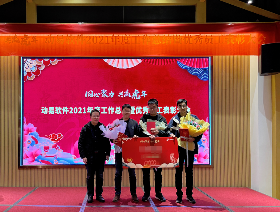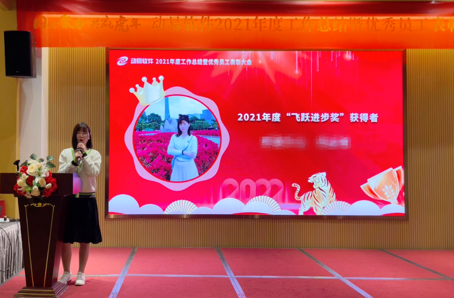 公司對(duì)2021年表現(xiàn)優(yōu)異的動(dòng)易人進(jìn)行了表彰鼓勵(lì), 主持人宣布了獲得各獎(jiǎng)項(xiàng)的名單,并由公司高層分別為獲獎(jiǎng)者頒發(fā)了表彰證書和獎(jiǎng)金。