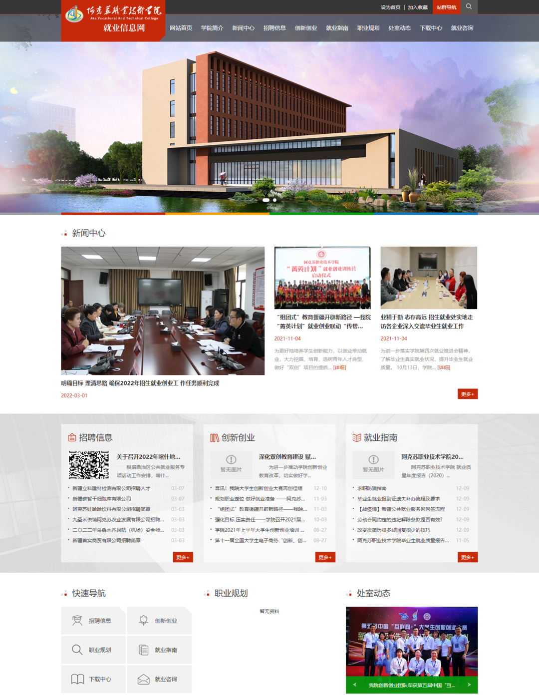 就業(yè)信息網(wǎng)作為站群二級(jí)站點(diǎn),通過整理、歸納和分析,提供就業(yè)動(dòng)態(tài),對(duì)學(xué)生的求職擇業(yè)及自我塑造和發(fā)展起到幫助和導(dǎo)向作用,并提供求職招聘渠道。