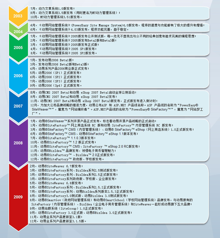 回望一路走來(lái)的七個(gè)年頭,從最初的動(dòng)力文章1.0版,到現(xiàn)在的全系列產(chǎn)品3.1.6版,動(dòng)易產(chǎn)品歷經(jīng)了上百次大小版本的發(fā)布,而秉持著“精益求精”的研發(fā)理念,動(dòng)易產(chǎn)品也進(jìn)行了數(shù)次的改革和創(chuàng)新: