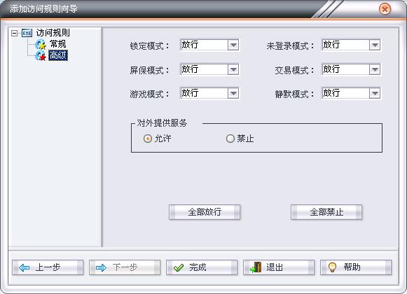 [3]在“高級”選項中的所有規(guī)則選擇“放行”。(如圖)