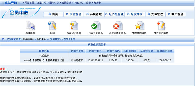 下面我們就以點卡類的商品為舉例,看看動易eShop2007是怎么樣來實現(xiàn)游戲充值卡銷售的。