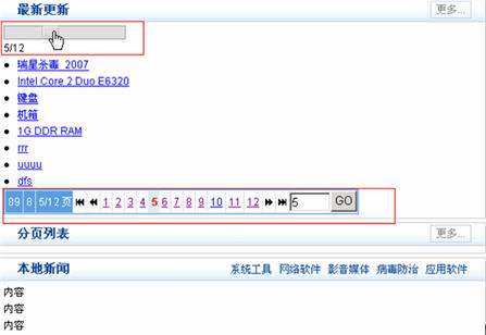 確定后,跟著保存模板,切換到前臺(tái),我們可以看到在前臺(tái)的最新更新里,我們已經(jīng)添加了一個(gè)帶有分頁(yè)效果的內(nèi)容列表。