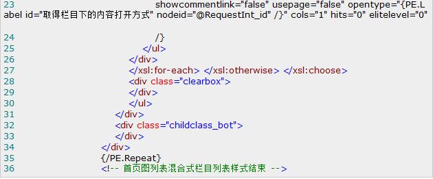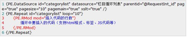 然后在第34和35行之間加入“PE.Repeat解析的隔行循環(huán)輸出”代碼,如下代碼加粗傾斜代碼: