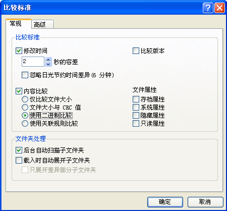 點(diǎn)擊確定后,程序進(jìn)入主界面。我們還需要設(shè)置比較標(biāo)準(zhǔn):使用二進(jìn)制比較。二進(jìn)制比較是為了比較文件的實際內(nèi)容,如果使用普通比較的話,如果文件時間不同,內(nèi)容相同,也會被視為差異文件。