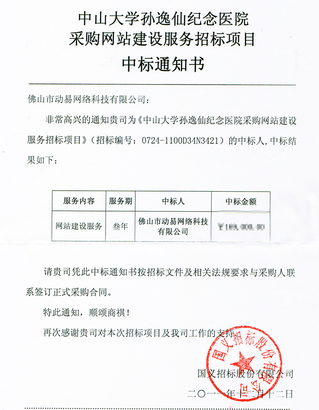 動易中標中山大學(xué)孫逸仙紀念醫(yī)院網(wǎng)站建設(shè)服務(wù)項目